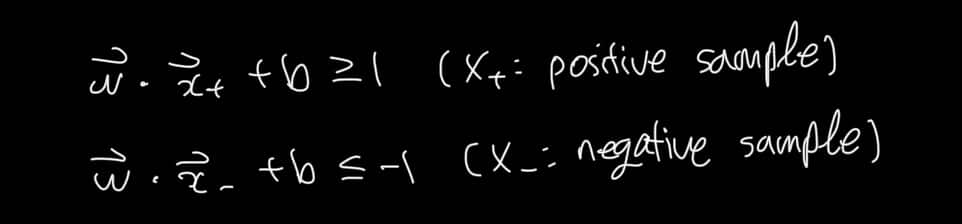 이때, SVM에서는 마진이 확보되어야 하므로 다음과 같이 쓸 수 있다.