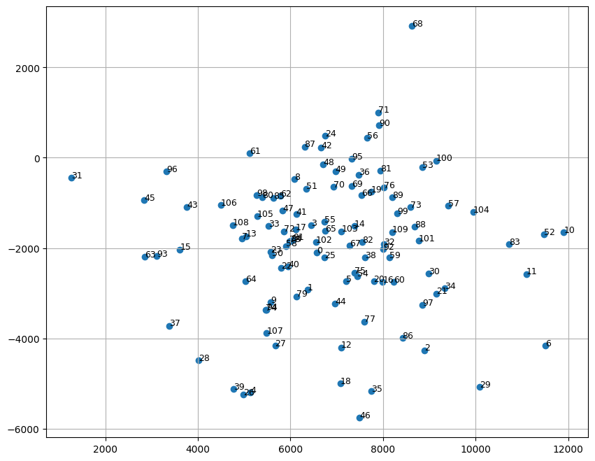 plt.text(Xred[i, 0], Xred[i, 1], str(i), fontsize=9)