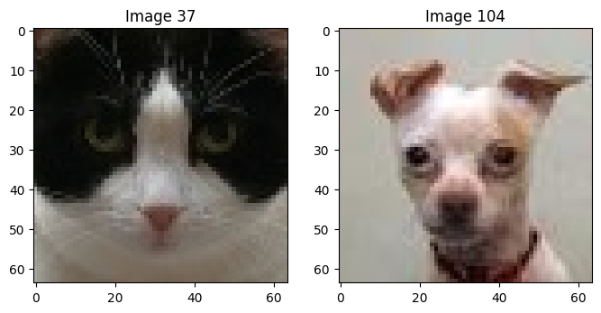 비슷한 특성을 가진 이미지들은 PCA를 통해 차원이 축소된 후에도 비슷한 값을 가질 것이라는 사실을 유추해볼 수 있다. 이를 검증하기 위해 좌표상 가까운 63번 이미지와 93번 이미지의 원본을 비교해보고, 좌표상 멀리 떨어져있는 37번 이미지와 104번 이미지 역시 비교해보자.
